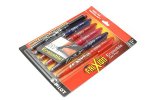 These ball point gel pens have a Thermo-Sensitive ink formula that disappears with erasing friction on paper, but what makes them great to use on fabric? Well, not only do they write smoothly, the ink will not smear, will not wash off or rub off while you need it, but when you're ready the ink will magically disappear with the touch of a hot iron. Package contains 1 pen each in Black, Blue, Red, Pink, Purple and Orange, 6ct total. Always test pens before use to be sure that the marks will completely disappear. May not be suitable with some dark fabrics or dyes, fiber contents, or fabric finishes.
